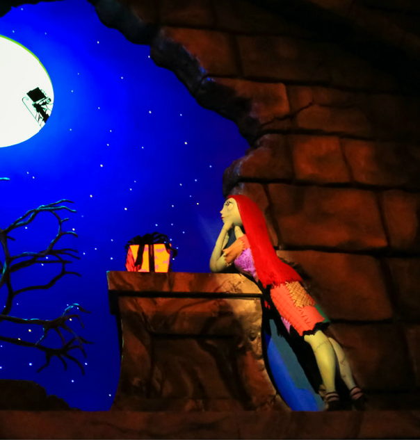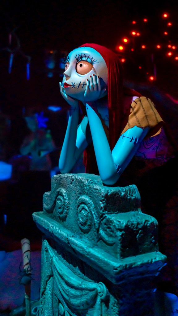 With a Disneyland Entertainment Art budget, Art Director Brian Sandahl did not have enough in his budget for an animatronic Sally for the 2001 opening, which he so desperately wanted. He would eventually get a Sally several years later…but not until Tokyo Disneyland got their’s first.