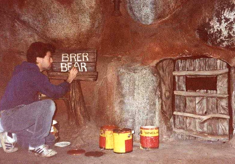 John told me, “I was doing a lot of touch up work on Grizzly for Chris (Runco) and I caused a big problem. There were about 300 people, all over the mountain. They were going to film a commercial but failed to ask Imagineering if they could have permission to do it. Runco’s answer was no, they couldn’t have permission because little old me needed to do a bunch of paint in the waterways. The film crew was furious with me! They had to remove their cameras and proceeded to stare at me for an hour and a half until I was finished.”