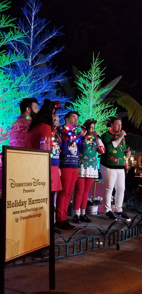 Downtown Disney brings phenomenal entertainment to its stages. This year my family and I had the best time listening to the live group WestBeat Sing’s “Holiday Harmony.” They are an amazing a cappella group who perform throughout California. I was very excited to hear that they were performing at the Disneyland Resort. They’ll be performing through the Christmas season. Be sure to follow @westbeatsings on Instagram to find out set times and locations, not only at the Disneyland Resort, but throughout SoCal.
